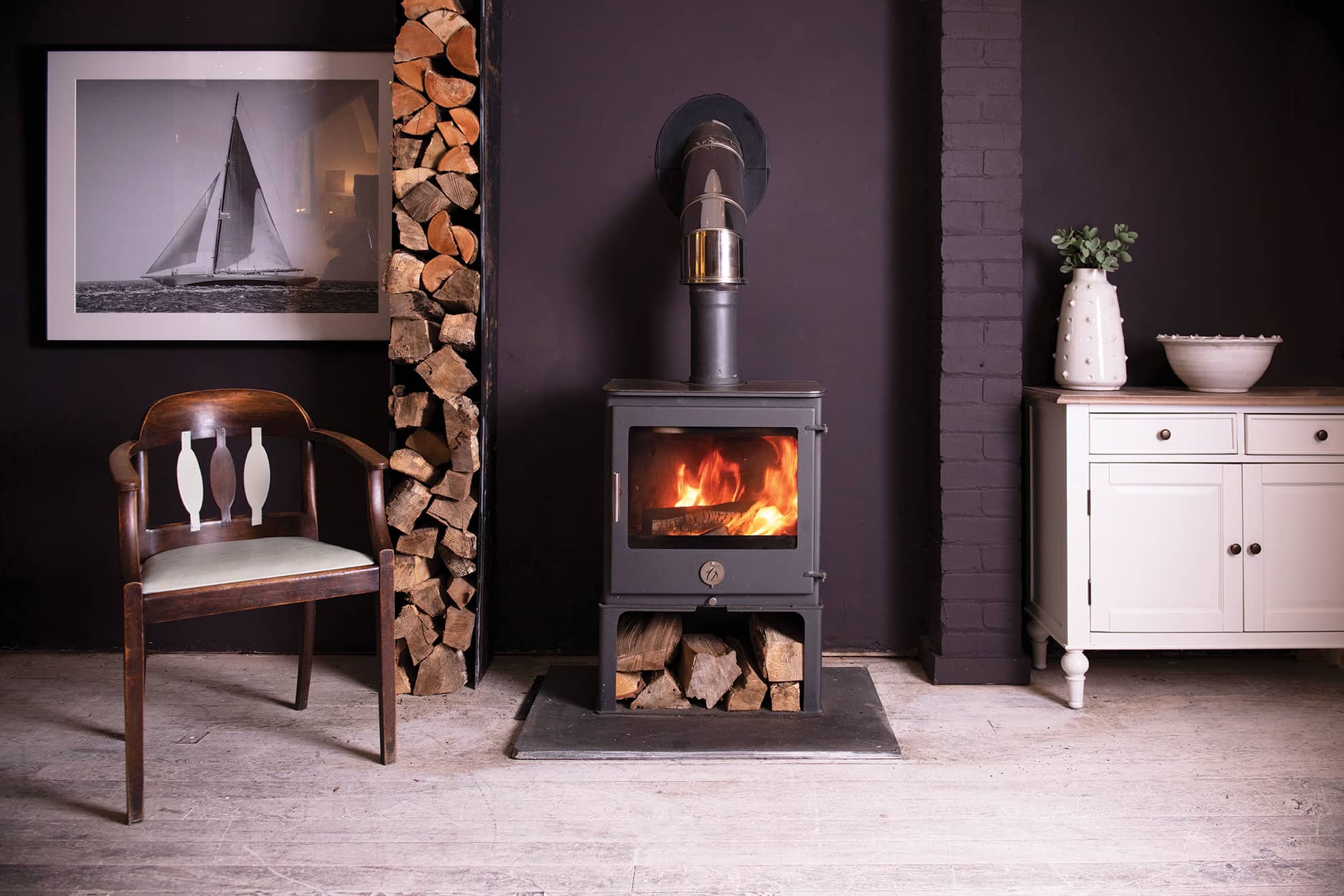 This is a generous stove; it has big fire box for plenty of fuel, it throws out 7kW of chilli hot heat on a cold winter’s night or a frosty Sunday morning….. and it lets you see it all happening. The generous wide screen glass gives you a wonderful big fire view. The simple styling means that the Penguin 7 works well in a fresh contemporary setting, but looks equally at home in a cosy, traditional room.